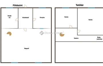 61 m²-es, galériás és kertkapcsolaton kívül még tárolóval rendelkezik.