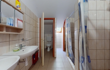 A házban 6 hálószoba és 3 fürdőszoba található – egy a földszinten, kettő az emeleten, köztük egy dupla fürdő. A tetőt Bramac cserép fedi, a hőszigetelt fa nyílászárók pedig hozzájárulnak az energiatakarékossághoz.