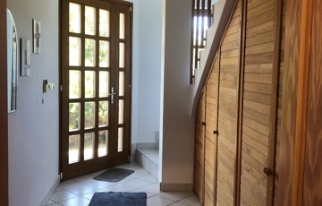 A teraszról, valamint két hálószobából is gyönyörű Balatoni panoráma tárul elénk – ez a látvány minden évszakban különleges hangulatot ad az otthonnak.