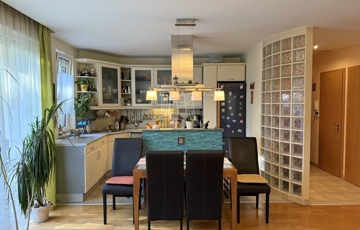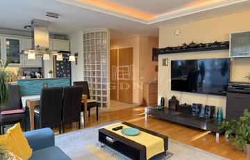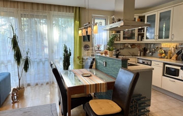 Az ingatlan 2004-ben épült, mindössze öt lakásos társasházban található, első emeleti, 81 m²-es, kifogástalan állapotú, amerikai konyhás nappalival és három hálószobával. A jól átgondolt elrendezés mellett két erkély (az egyik amerikai konyhás nappaliból nyílik, a másik pedig az egyik halószobából), ablakos fürdőszoba, külön vendég-WC, gardrób, két teremgarázs-hely és 7 m²-es tároló is tartozik hozzá.