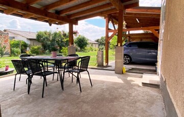 -Egy könnyűszerkezetes,2 állásos kocsibeálló , T18-as lemezfedéssel