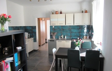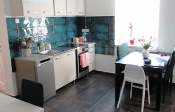 -Az ingatlan modern burkolatot kapott: konyhában gres járólap, szobákban laminált parketta, előszobák, fürdőszoba, spájz járó lapozva