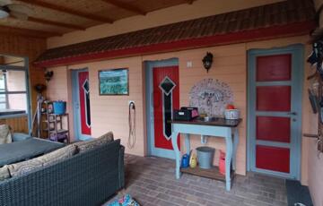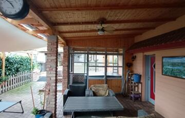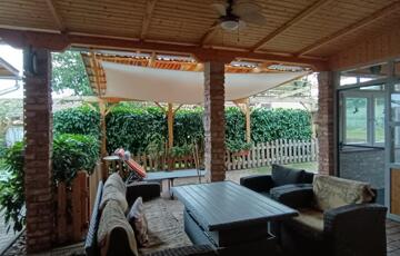 - az étkezőből érkezünk a hatalmas fedett teraszra, amely biztosítja az ellazulást és a közös családi, baráti összejövetelek kellemes időtöltését