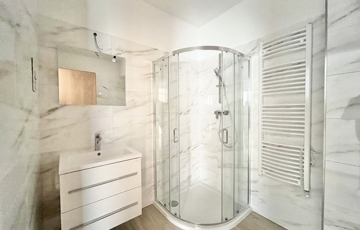 Kaposváron a belvárosban, a Dési Huber utcában - a kórház közelében - igényes kivitelben épült, modern architektúrájú 30 lakásos, új társasház földszintjén, 80 m2-es lakás, 12 m2-es terasszal együtt eladó. A lakásban nappali-étkező-konyha, 2 szoba, közlekedő, szélfogó, fürdőszoba, wc helyiségek kerültek kialakításra. Az épület korszerű energetikájú, a lakás fűtés levegő-víz hőszivattyús Nibe fűtésrendszerrel - padlófűtéssel, a fürdőszobában elektromos törölközőszárító radiátorral - van megoldva, továbbá a lakás hűtése fan-coil Gree rendszerrel történik. A lakás fűtéséhez, vagy hűtéséhez szükséges villamosenergiát az épület tetején elhelyezett napelemek biztosítják, a társasházban központi vízlágyító berendezés is beszerelésre került. A fürdőszobában magas minőségű Wellis szerelvények kerültek beszerelésre. A lakáshoz igény esetén 3.000.000.- Ft-ért az épület zárt udvarában 1 személyautó részére parkolóhely megvásárolható! Az ingatlan megvásárlásához CSOK igényelhető!