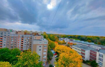 Győr – Marcalváros 2. csendes, zöldövezeti részén vár Téged egy 37 m2-es, 1 szobás, világos, 9. emeleti erkélyes panellakás zöldövezeti panorámás kilátással.
