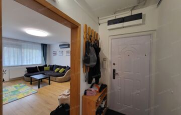 A konyha Bosch gépekkel felszerelt (mosogatógép, sütő, gázfőzőlap), a nappaliban Gree klíma gondoskodik a hűs nyári napokról. A lakás 2019 és 2024 között több lépésben korszerűsítették: új nyílászárók, radiátorok, villamos hálózat, aljzatkiegyenlítés és új parketta – így ide csak valóban költözni kell.