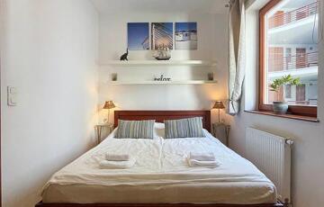 Elrendezése: tágas amerikai konyhás nappali, hálószoba, fürdőszoba és erkély.