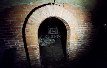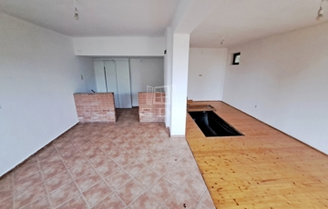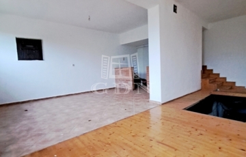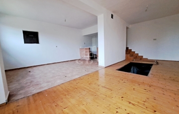 -a földszinten amerikai konyha-nappali, melynek közepén lépcsős lejárat a csodálatosan kifaragott, villanyvezetékelt 112m2-es pincébe