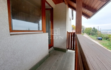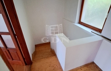 -kényelmes fa lépcső az emeletre, ahol 2 hálószoba, fürdőszoba, erkély, terasz található