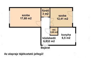 Az ingatlan 48 m²-es lakótérrel rendelkezik: két szoba, konyha, fürdőszoba, WC.