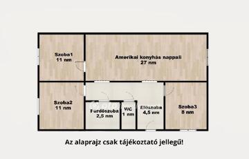 A nappali amerikai konyhás kialakítású, világos és barátságos tér, amely ideális központja lehet a mindennapi életnek. A három külön nyíló szoba tökéletes megoldás családok számára, hiszen könnyedén kialakítható gyerekszoba, dolgozószoba vagy vendégszoba is. A fürdőszoba kádas kialakítású, a WC külön helyiségben található, amely szintén praktikus, családbarát megoldás.