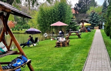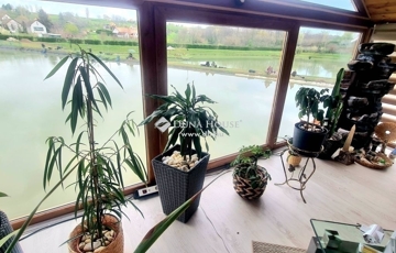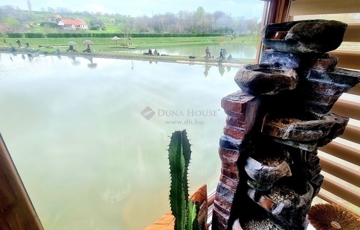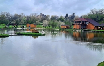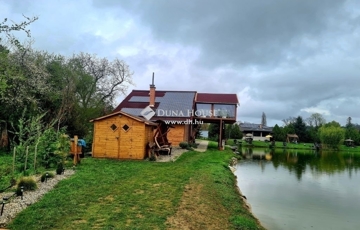 Pécs közelében eladó közel 2 HA területen, 2 halastó, hozzá tartozó lakóingatlannal, vendégházzal, tároló épületekkel!Az ingatlan gyönyörűen parkosított, az öntözőrendszer vízellátása a fúrt kútból megoldott, szivattyúval, földbe leásott 3 m3-es víztározóból. . A lakóingatlan 38-as Porotherm téglából készült 2005-ben, utólag kívűl-belül fa burkolatot kapott 2022-ben, mikor teljes külső - belső felújításon esett át a lakóépület és a teljes zöldterület is. Alsó szinten nappali-étkező, fürdő, w.c. és konyha található, tetőtéri szinten 2 háló, illetve egy télikert található, mely szerves részét képezi az emeleti szintnek és a tó fölé kinyúlva csodálatos panorámát mutat.A tavak mikroklimájának biztositása érdekében 42 kinai császárfa csemete növekszik. A tavakban elsősorban békés halak, pontyok (15-30 kg), amúrok, kárászok, keszegek várják a horgászokat.A ház fűtése vegyestüzelésű kazánnal illetve inverteres klímával megoldott.A lakóingatlan teljes energiaellátását biztosítja az épület tetőfedésén elhelyezett, jelenleg 7kW teljesítményű napelem, mely 9 kW-ra bővíthető.A teljes terület mozgásérzékelős riasztóval, illetve kamerarendszerrel felszerelt, mely telefonra riaszt.A hátsó tó mellett nemrég kialakításra került egy 25 nm-es f, 3 személyes vendégház., fürdővel, és 1 lakószobával.A tavak körül elhelyezett kis tárolóépületekbe a villany bevezetve.Jelenleg csupán a használati ivóvíz ellátásért kell fizetni.A tavak jelenleg hobbi horgászok által örömmel látogatottak, de az új tulajdonosra nézve ez nem jelent semmiféle kötelezettséget, akár teljesen elzárható a birtok a nyilvánosság elől.Amennyiben szeretné az ingatlant megtekinteni vagy további kérdései vannak, kérem hívjon bizalommal!