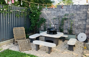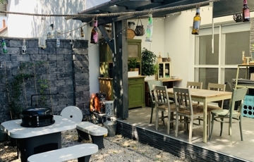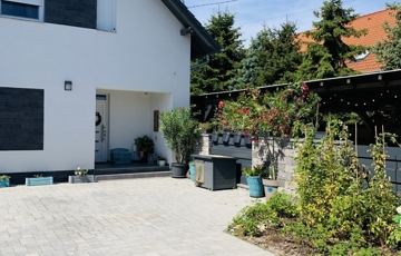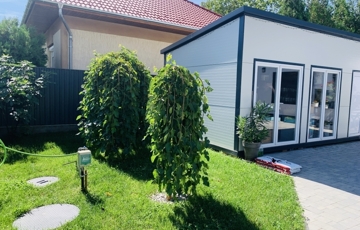 A parkosított udvaron elszeparált kerti grillező kapott helyet, valamint egy 15 m²-es műhely is megtalálható külön bejáratú tárolóval, amely ideális hely a hobbi vagy tárolási igények kielégítésére.
