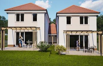 ÚJ ÉPÍTÉSŰ IKERHÁZ VERESGYHÁZ FREKVENTÁLT RÉSZÉN, garázzsal, saját kerttel!