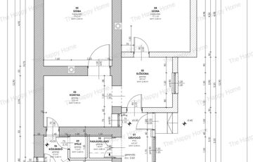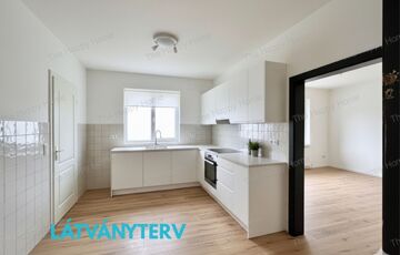 Helyiségek: szélfogó, előtér, 2 nagyméretű, külön nyíló szoba, konyha, közlekedő, fürdőszoba, külön WC, kamra