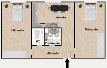 - külön nyíló szobák, külön fürdő és WC, előszoba, konyha.