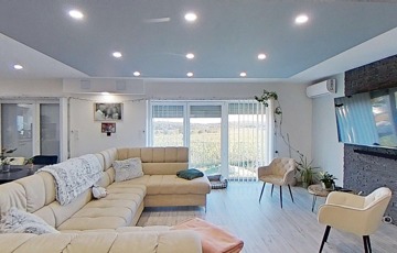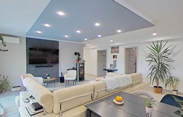 Világos, tágas belső terek, praktikus elosztás, bravúros térkihasználás, pazar, egymással harmonizáló színek jellemzik az ingatlant. A helyiségek méreteiről, a ház alaprajzáról a mellékelt virtuális túra keretein belül tájékozódhat, megtekintés előtt érdemes bejárni.