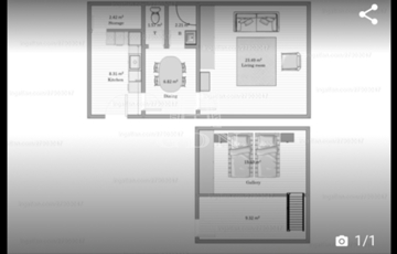 1szoba, étkező, hálógaléria, konyha-előtér, fürdőszoba, WC.