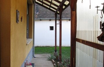 Az udvarban kényelmes kertrész található, ideális lehetőség a pihenésre és a kikapcsolódásra. A kert be van ültetve gyümölcsfákkal, amely 10 db meggyfát, egy diófát tartalmaz, továbbá egy mogyoróbokor és málnatövek is fellelhetőek.