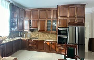 Az előtér konyha praktikus elrendezést kínál, a lakás egésze pedig otthonos, harmonikus atmoszférát áraszt.