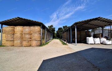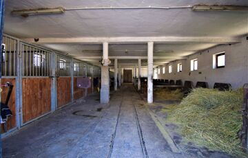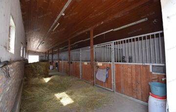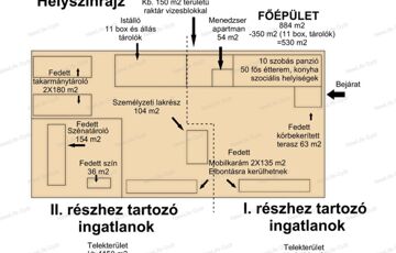 II. rész irányára: 194 MFt, mely tartalmazza a főépület végét, kb 350 m2-nyi, 11 boxot és állást, tárolókat, 2*180 m2 fedett takarmánytárolót, 154 m2 fedett szénatárolót, 34 m2 méretű fedett színt és egy személyzeti komplett lakrészt 104 m2en. A főépülettel szemben található (másik) 135 m2 területű fedett mobilkarám, mely szükség esetén bontható, vagy autóbeállók alakíthatók ki belőle.