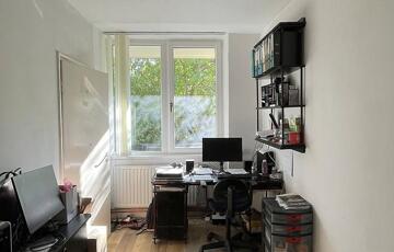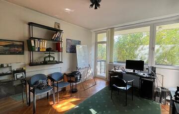 A jelenleg irodaként funkcionáló lakás 2 szeparált bejárattal is rendelkezik. 3 szoba, 2 ablakos konyha, 2 fürdőszoba, két előszoba és 2 erkély került kialakításra.