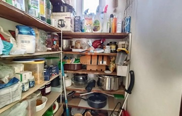 Balra: egy kisebb szoba a bejárat közelében; továbbhaladva a konyha.