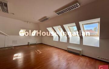 A második emelet és a tetőtér együtt több mint 250 m²-t tesz ki, amely kedvezményesen, 2500 € + áfa összegért is bérbe vehető.