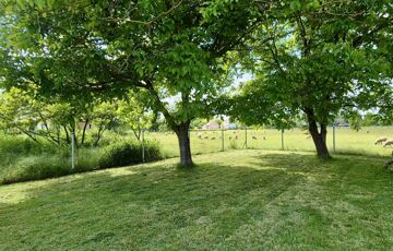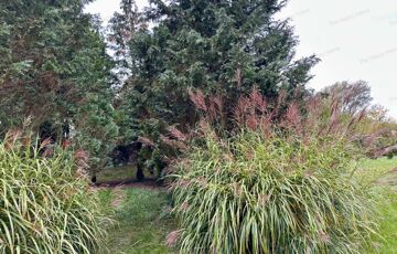A terület teljes egészében körbekerített, ahol gyümölcsfák (dió, cseresznye, őszibarack, vilmoskörte, meggy), illetve fenyőfák és díszcserjék biztosítják a kellemes hangulatot és a hűs árnyékot nyáron.