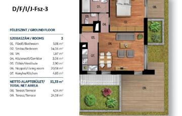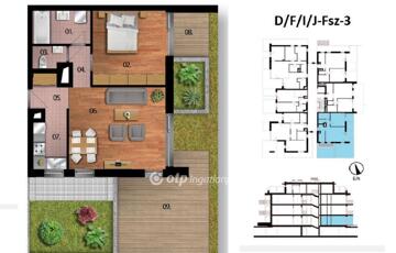 Lakások mérete: 49 nm-es, 2 szobás lakástól a 150 nm-es, 5 szobás és a tetőteraszos, exkluzív penthouseig.
