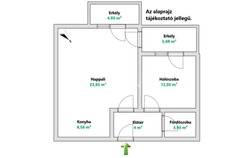 A lakás jellegzetessége a dupla erkély, melyek alapterülete 6 nm + 5 nm.