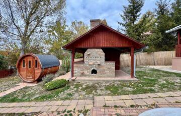 <p><strong>A Szarvasi CasaNetWork ingatlaniroda megvételre kínál Békés vármegye üdülőparadicsomában, a természet adta lehetőségek "hálójában" Békésszentandráson egy 10+2 férőhelyes, kétszintes, téglaépítésű hétvégi házas nyaralót, melynek udvarán wellness lehetőségek sokasága; szauna, jakuzzi, medence áll rendelkezésére az ide érkező vendégek számára.</strong></p><p><strong>A békésszentandrási nyaraló főbb jellemzői:</strong><br />- A nyaraló hasznos alapterülete<strong> 127 m<sup>2</sup>; téglaépítésű, 720 m<sup>2</sup></strong> telken helyezkedik el.<br />- Az ingatlan <em>pinceszintjén</em> egy <strong>egyterű helyiség</strong> kapott helyet, mely jelenleg közösségi térként funkcionál.<br />-<em> Földszinti részén </em><strong>terasz, amerikai konyhás nappali, közlekedő, fürdőszoba illemhelyiséggel, külön illemhelyiség, tároló, szoba, lépcsőház</strong> található.<br />- <em>Emeleti szintjén </em><strong>közlekedő, 2 szoba, loggia, fürdőszoba illemhelyiséggel</strong> lett kialakítva.<br />- Villamos hálózata 2022-ben lett felújítva, ekkor lett kibővítve a hálózat<strong> 3 x 32 A </strong>áramerősségre.<br />- Áramellátása <strong>10 kW-os napelem</strong>mel működtethető, melynek fenntartása szinte rezsimentes!<br />- Fűtését a szobákban elhelyezett <strong>hűtő-fűtő klímák</strong>kal lehet kivitelezni.<br />- Vízellátása <strong>fúrt kútról, hidrofor rendszerrel </strong>történik.<br />- A szennyvíz elvezetése <strong>derítő</strong>be kivitelezett.<br />- 2022-ben teljes körű felújítást kapott az épület: fürdőszoba felújítása, burkolatok, nyílászárók cseréje történt meg kiváló minőségű anyagokra.<br />- A telken épített grillterasz biztosítja a nyári sütögetések helyszínét, ehhez épült egy könnyű szerkezetes tároló.<br />- Az udvaron lehetősége van a vendégeknek <strong>medence vagy jakuzzi használatra, szaunázásra, </strong>de akár saját célra is alkalmas azoknak, akik a hétköznapi élet mókuskerekéből kizökkennének.<br />- <strong>Jelenleg is 10+2 fős szálláshelyként üzemel, </strong>birtokba adás a foglalásokkal együtt értendő, a szállás minden évben eléri a 120 kiadott éjszakát.<br />- Az ár magában foglalja az ingatlan<strong> teljes felszereltség</strong>ét.<br /></p> <p> Amennyiben a fenti <strong>184200098-as azonosító számú nyaraló,</strong> vagy bármely kínálatunkban található ingatlan felkeltette érdeklődését, kérem hívjon bizalommal!</p><p>/A hirdetésben szereplő információk a megbízótól kapott adatok alapján készültek./</p><p>Irodánk teljes körű szolgáltatással áll ügyfelei rendelkezésére:<strong> hitelügyintézés, ügyvédi szolgáltatás, ingatlan értékbecslés, energetikai tanúsítvány készítése.<br /></strong></p><p><strong>CasaNetWork - Ingatlanban otthon vagyunk!</strong></p>