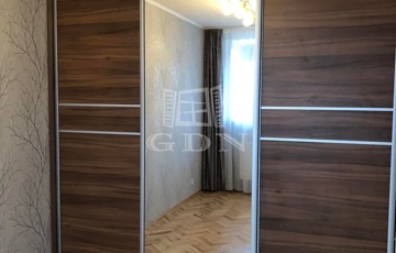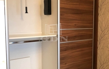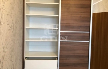 Az előszobában teljes hosszban beépített szekrény, a hálószobában három tolóajtós gardrób kapott helyet.