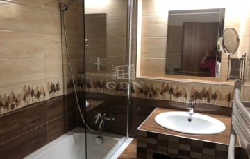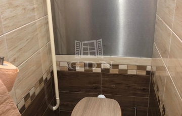 A víz- és villanyvezetékek cseréje megtörtént, a fürdőszoba panelkivágással bővített és modern kialakítású.