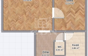 A nappali klímás, műanyag redőnyökkel felszerelt, mindkét szoba parkettázott.