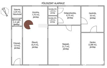 egy dolgozószoba, két külön WC helyiséggel