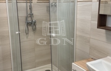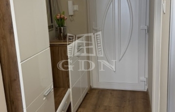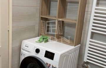 Az előszobában praktikus tároló, a fürdőben zuhanyzó, mosógép és WC található.