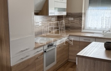 A nappali és a konyha egy légtérben kapott helyet, U-alakú konyhával, ahol minden beépített gép megtalálható – tökéletes a mindennapokhoz vagy vendégfogadáshoz.