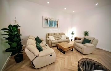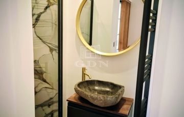 A felújítás során magas színvonalú anyagok kerültek felhasználásra, amely modern és elegáns megjelenést biztosít.