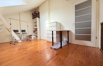 Titkos favorit a zavaros ingatlanpiac sokaságában, Zugló és Józsefváros határán a Puskás aréna mellett kiemelkedő infrastruktúrával. Ha szeretne központi elhelyezkedéssel egy kiváló, lakható, de akár könnyen bérbeadható társasházi lakást megfizethető áron akkor érdemes ezt az ingatlant személyesen is felfedeznie. Csupán 4 megállónyira (7perc metró) a Deák Ferenc tértől, Stadionok metró megállótól séta távolságban, madárcsicsergős, zöld és békés környezetben Stróbl Alajos utcában található az ingatlan. Elkerített zárt kertben áll az a 6 lakásos lépcsőház melyben a legfelső, második emeleten helyezkedik el ez a különleges, sallangoktól mentes duplex lakás. Az összes ablaka a csendes belső kert irányába néz és napkeltétől napnyugtáig világos, fényárban úszik. Az épület rendezett, a tetőt 10 éve újították fel új cserépfedést kapott, egyidejűleg velux ablakok kerültek beépítésre a felső szinten és az alsó szinten is műanyag ablakok váltották a fa nyílászárókat. Az alsó szinten az előszobából nyílik az összes helyiség, egy tágas háló, mellette egy praktikus kamra /dolgozó ablakkat és a fürő illetve a külön wc kapott helyet a konyha nappali mellett. A konyha – étkező és nappali jelenleg egy egység, de az ablakok elhelyezkedésének köszönhetően akár újra külön választhatóak. A nappaliból vezet fel egy csigalépcső, ahol további két hálószoba (ablakokkal)található, igény esetén a felső szint is alkalmas egy zuhanyzó és mosdó elhelyezésére. Az alső rész 47m2 a felső pedig bruttó 56m2 , a földhivatali nyilvántartás szerint 77m2, az értékesítési alapterületkén a 190cm alatti területet a szokásos 50%-kal került feltüntetésre. Fűtését tekintve jelenleg gázkonvektor, ami akár egy mika kazánra is cserélhető. Igény esetén a fűtés hőszivattyús klímákkal is megoldható opcionálisan H tarifával párosítva. A lakást immár 6 évig bérlő lakta, azonnal birtokba vehető az ingatlan. A környéken minden megtalálható, ami városi mindennapok kényelméhez elengedhetetlenek. Könnyen parkolhatóak a környező utcák, kiváló tömegközlekedési lehetőségek állnak rendelkezésre. Az aréna pláza csupán 900m távolságra. Tökéletes lehet akár nagyobb családok részére, de bérbeadás is korrekt hozamot hoz a stabil ingatlan ár növekedés mellett így magas inflációs környezetben értékálló befektetés.