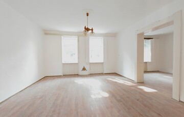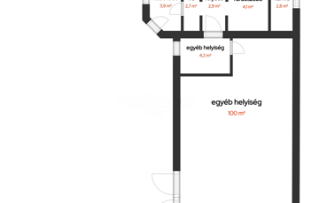 A 120 m2-es lakótér 3 benapozott szobával és nagy alapterületű konyhával rendelkezik, utóbbi kialakítása a vevőre vár.