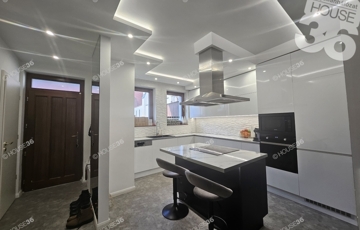 -magasfényű konyhabútor gépesítve (Whirlpool, Samsung, Bosch gépekkel), beép. mosogató, mosógéppel, beép. mikro, hűtő