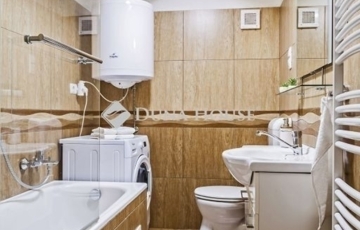 * Fürdőszoba: kád + zuhanyzó, modern mosógép és szárító