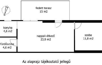 A lakóház nettó alapterülete 45 m2, a fedett terasz pedig 15 m2.