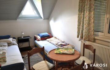 Eladásra kínálunk egy osztatlan közös ikerházat, használati megosztással, Balatonfüred csendes, zöldövezeti részén. Az épület egy közös fallal csatlakozik a másik házhoz. Átlagos állapotú, azonnal költözhető és teljesen berendezett, így ideális választás lehet mind lakóhelynek, mind nyaralónak. Lakó területe 80 m2 amely két szinten lett kialakítva. (alaprajz mellékelve)