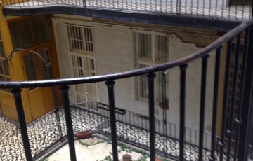 A lakás a ház 2. emeletén található (a társasház szerkezete miatt hivatalosan a 4. emeleten), ablakai a Kazinczy utca csendes szakaszára néznek.