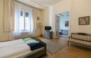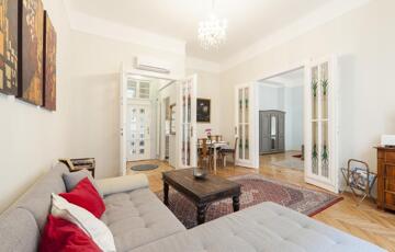 A lakás frissen felújított, megőrizve a klasszikus polgári stílust, de a modern kényelmet is biztosítja.