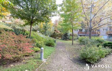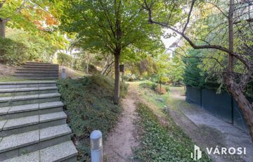A kertvárosi jelleget a társasház hatalmas, több szintes, zárt, szépen parkosított udvara adja, ahol sétányok, padok és játszótér is várja a lakókat.