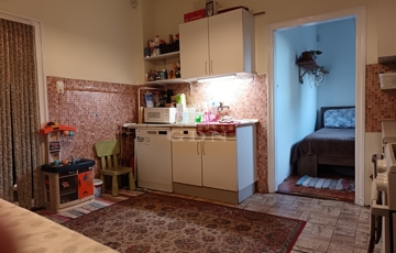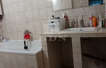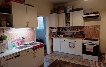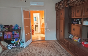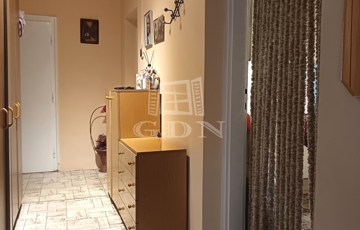 A 10 nm nagyságú fedett teraszon át haladunk az előszobába, ahonnan nyílik a konyha, a fürdőszoba, és a 3 szoba.