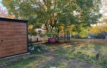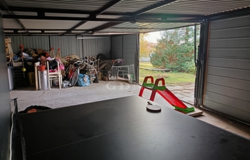 A kertben helyt kapott egy betonalappal rendelkező 3 állásos lemezgarázs is, ahonnan a pince megközelíthető 810 nm nagyságú).